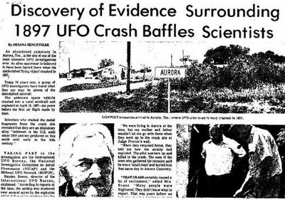 Aurora, Texas. April 17, 1897. Fifty years before Roswell, New Mexico, an alien crash on par with what is said to have occurred in Roswell, apparently premiered in Aurora. Though UFO researchers have catalogued it as a “UFO crash and retrieval”, the Aurora crash was not of an “unidentified flying object” as such, for what happened next, clearly showed that everyone knew what was occurring in this normally quiet corner of Texas.