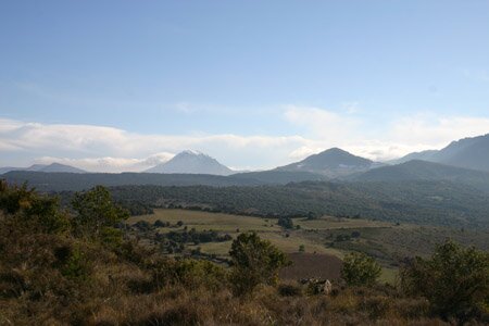 Bugarach is indeed a tiny village, sitting in the shadow of the “Pic de Bugarach”, rising 1230 metres above sea-level and the highest mountain in the Corbières region – though dwarfed by the Pyrenees that rise to the south. The earliest recorded mention of the mountain was as Burgaragio in 889 AD, which is also known as Pech de Thauze. From a geological perspective, Bugarach is an oddity, an “upside down mountain”, as its tops layers are millions of years older than the lower strata. It is as if someone shot the mountain in the air, flipped it around, and then it landed again.