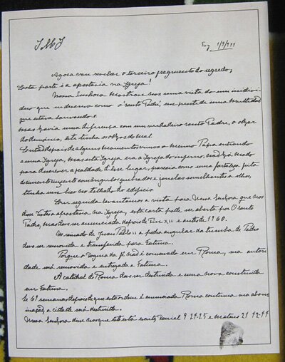 The letter of the Third Secret of Fatima