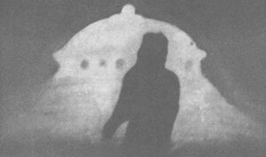 Photograph taken by Howard Menger of one of his "spaceship", in which he claimed to visit the Moon