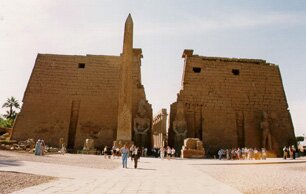 The Sphinx is unique in Egypt. To some it seems to herald the rising of the Sun. But it also seems to be a protector. Perhaps it is the ancient deity Bes, who was depicted originally as a lion, but was later depicted as a dwarf, with a human head, but nevertheless still with a lion tail. He was the protector of the Egyptian kings, just like the Sphinx seems to be an impressive guardian. Luxor’s companion temple some kilometres South, Karnak, is considered by some to be the biggest temple in the entire world… it is definitely the largest temple in the Ancient World – as far as one can tell. Between Karnak and Luxor there are no less than two thousand sphinxes; or rather: were. The temples of Karnak and Luxor, both situated on the East Bank of the river Nile, were connected by a canal, lined on both sides by one thousand ram-headed and human sphinxes.