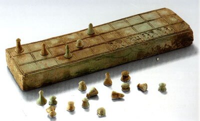 What kind of game, is more difficult to asses. Some argue that it was based on the journeys of the sun god and the moon goddess, both in astronomical and mythological terms. That game had close parallels in ancient Egypt, which allow the reconstruction of its main features and event fields. In fact, such analysis revealed that these fields coincided with many virtually identical fields in the still popular “Game of the Goose”, which are still in the same locations along the track of this “modern” game as on its direct predecessor.