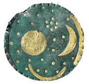 The Nebra disc is emblazoned with symbols of the Sun, Moon and stars and said by some to be 3,600 years old. Writing in the journal “Antiquity”, Emilia Pasztor of the Matrica Museum in Hungary and Curt Roslund of Gothenburg University in Sweden, they challenge the possibility that the 32cm-wide disc could have been used as a precise calendrical device. Two golden arcs on the outside of the disc may show how far the sunrise and sunset move along the horizon between winter and summer solstices. The arcs are 82.5 degrees long, which is the angle the Sun is seen to travel between the high mid-summer sunset and the low mid-winter sunset.